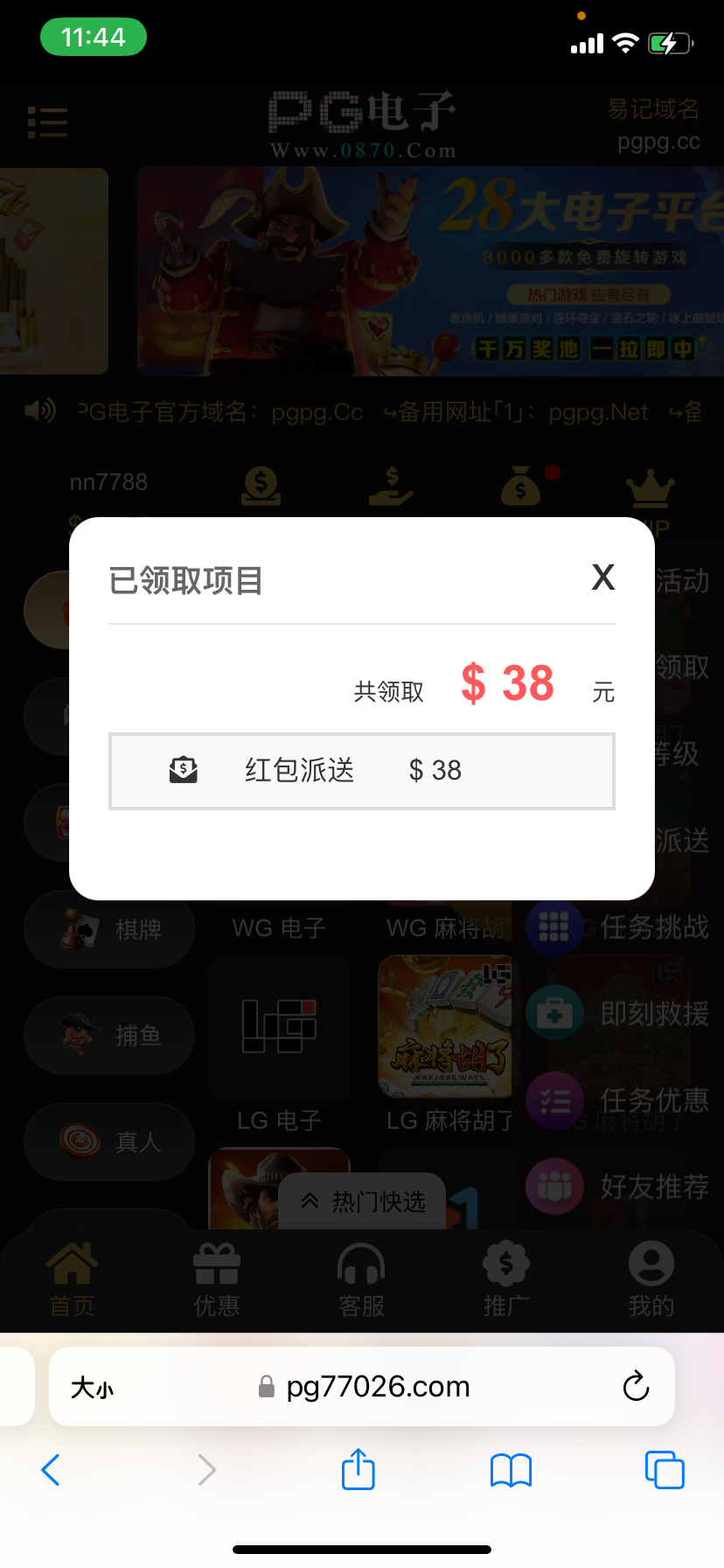 去年打过送了18好像忘记了 打出来五张 刚刚又给我打了电话说上号就有免费彩金领了38 可以登陆看看