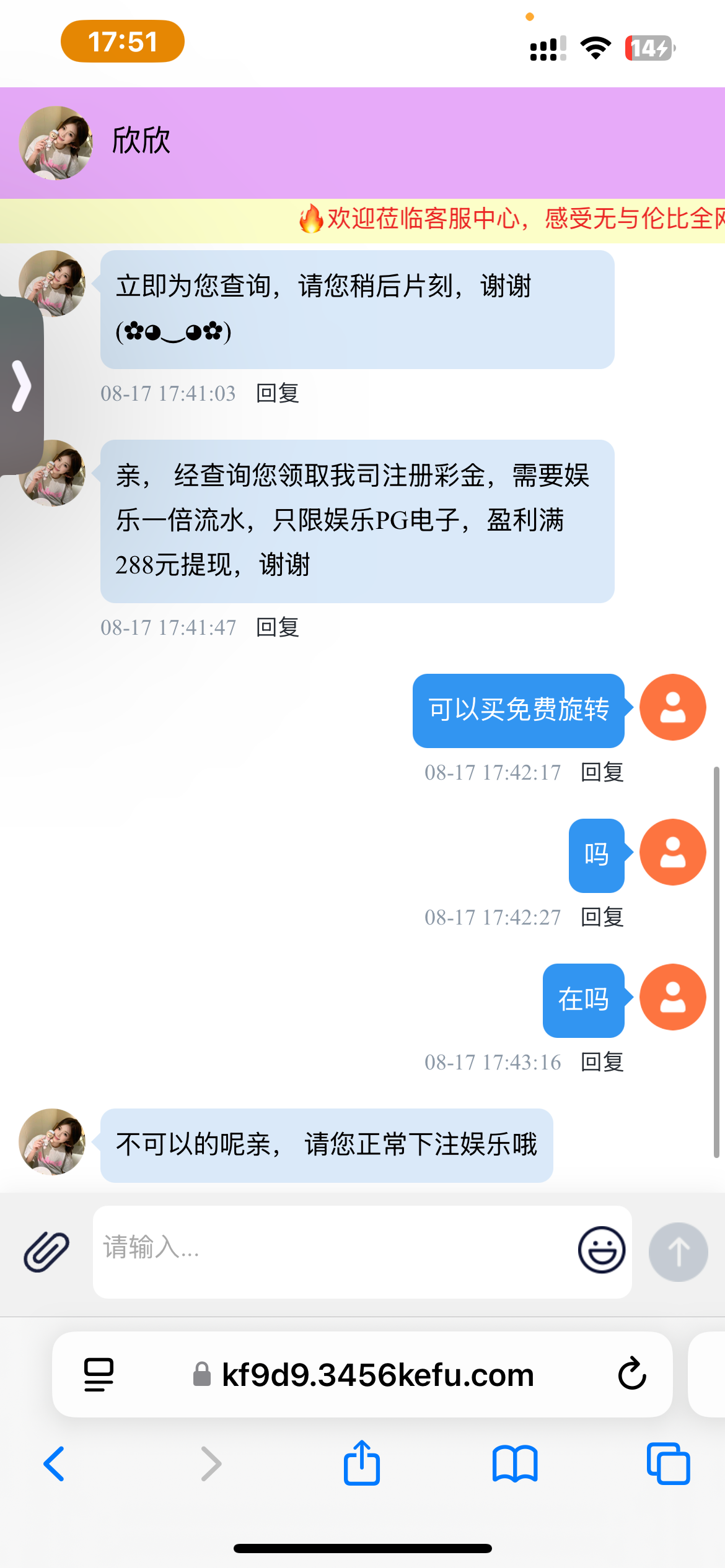 前两天注册的 刚刚打电话来说有彩金 送了18 只能打pg满100一杯水出款 刚刚打到60挂壁了 老哥们可以先注册等电话