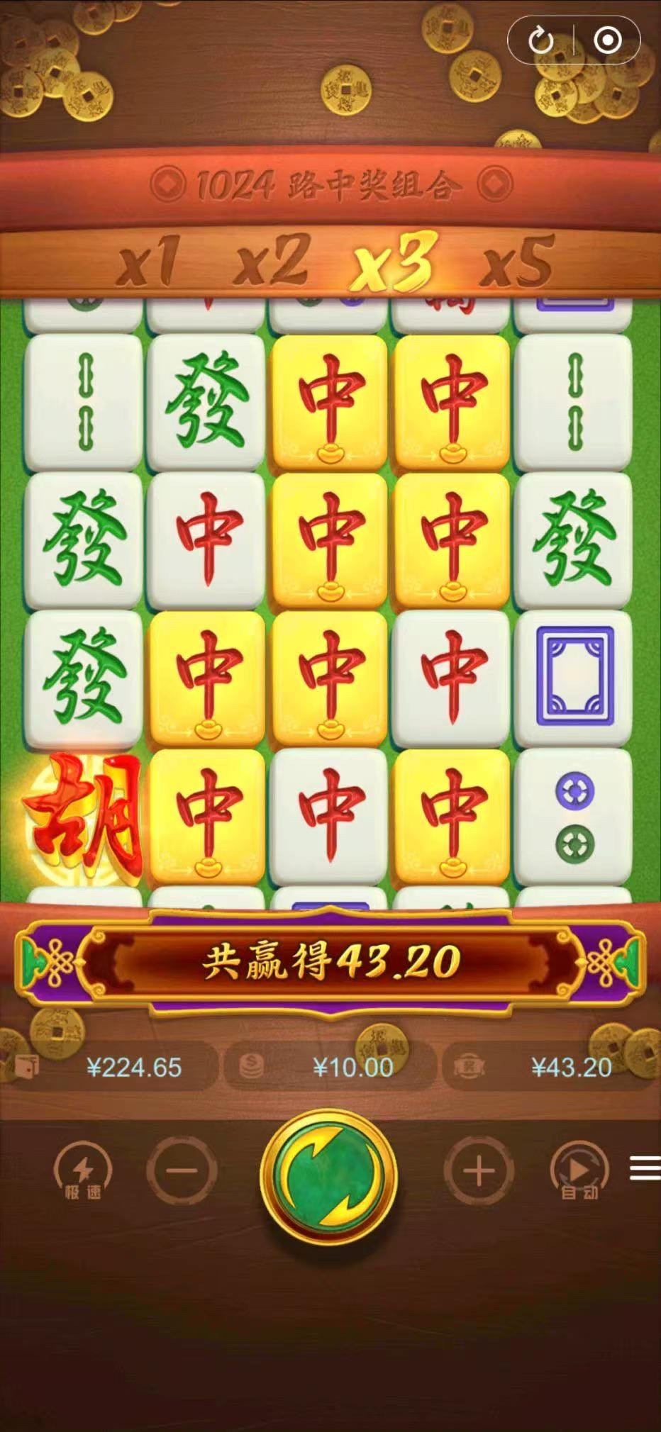 再见梦幻 红中中奖路3✖️4✖️4✖️3倍=144条中奖路,底分10,4星连珠乘3,144✖️10✖️3=4320 发财中奖路2✖️3✖️3✖️ 3✖️倍数5=270条中奖路 底分10,1条五星连珠✖️5, ...