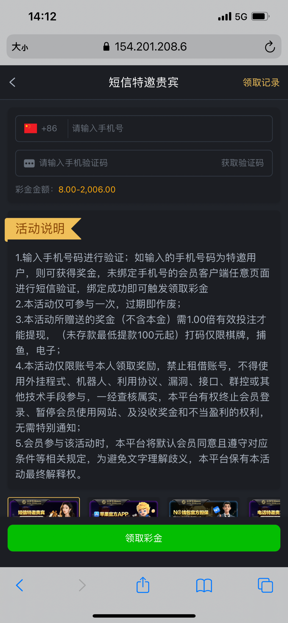 2006金沙集团短信特邀彩金
