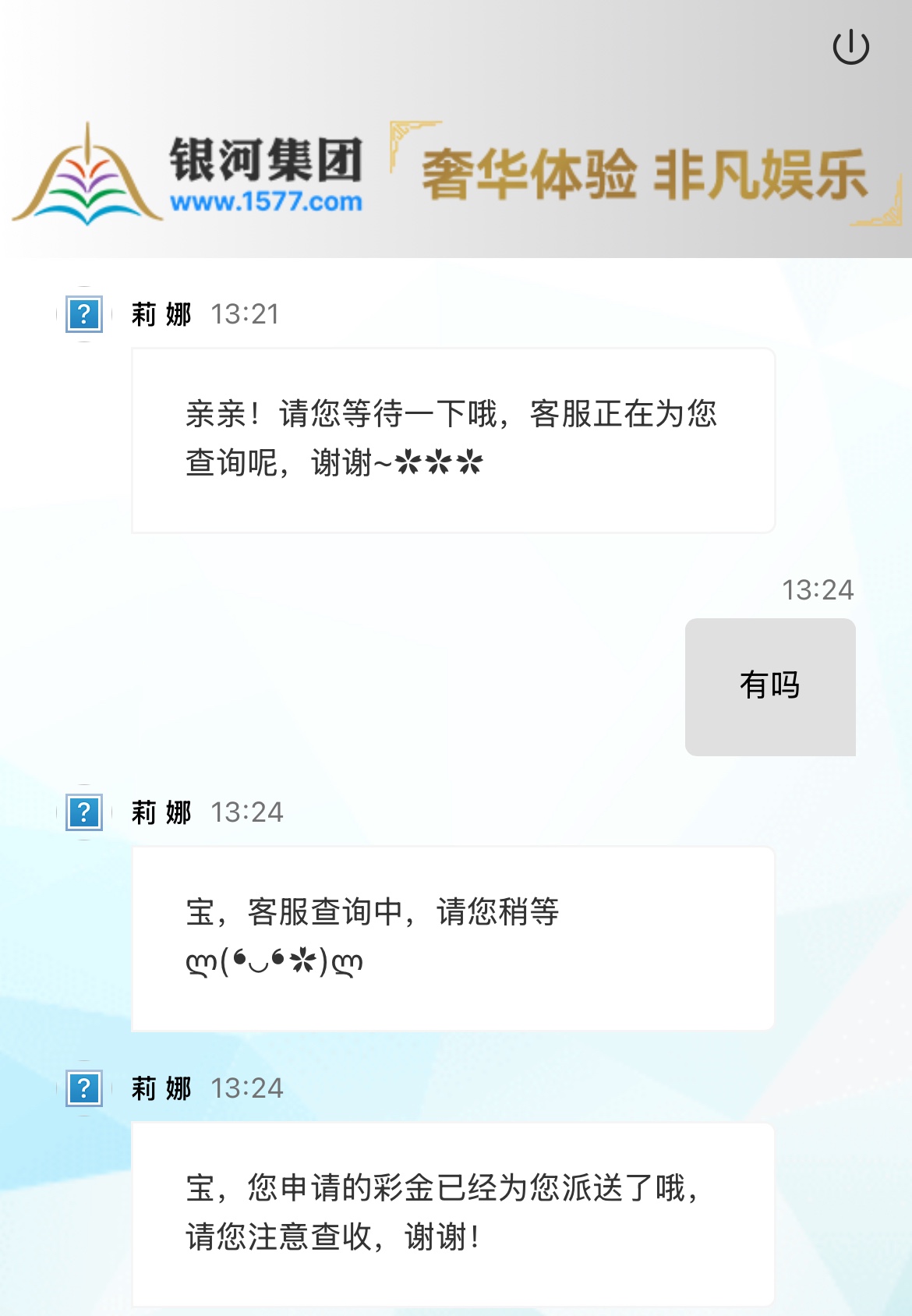 【银河1577】—✅—回访彩金