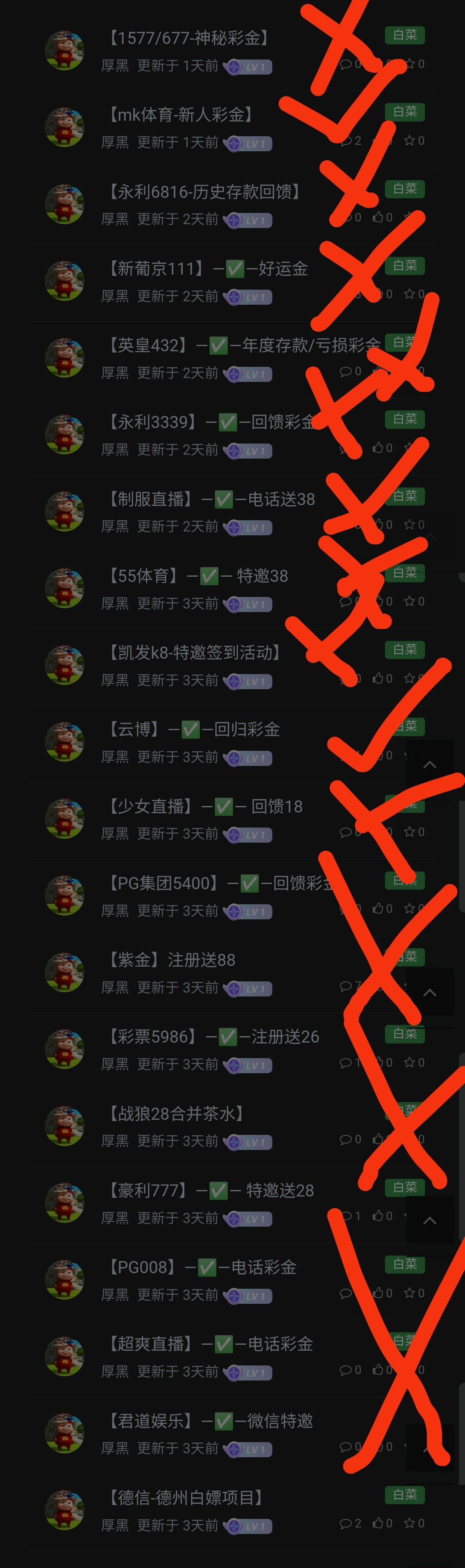 3、本站资源均来自互联网-需自行判断与负责。每日更新(论坛内容仅用于 薅羊毛 白嫖 论坛严禁充值娱乐 严禁任何形式推广 发现一律提交当地公安 )感谢您的支持!