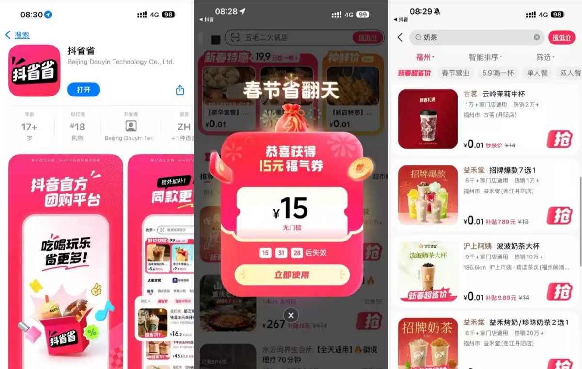 抖省省8~15元无门槛
