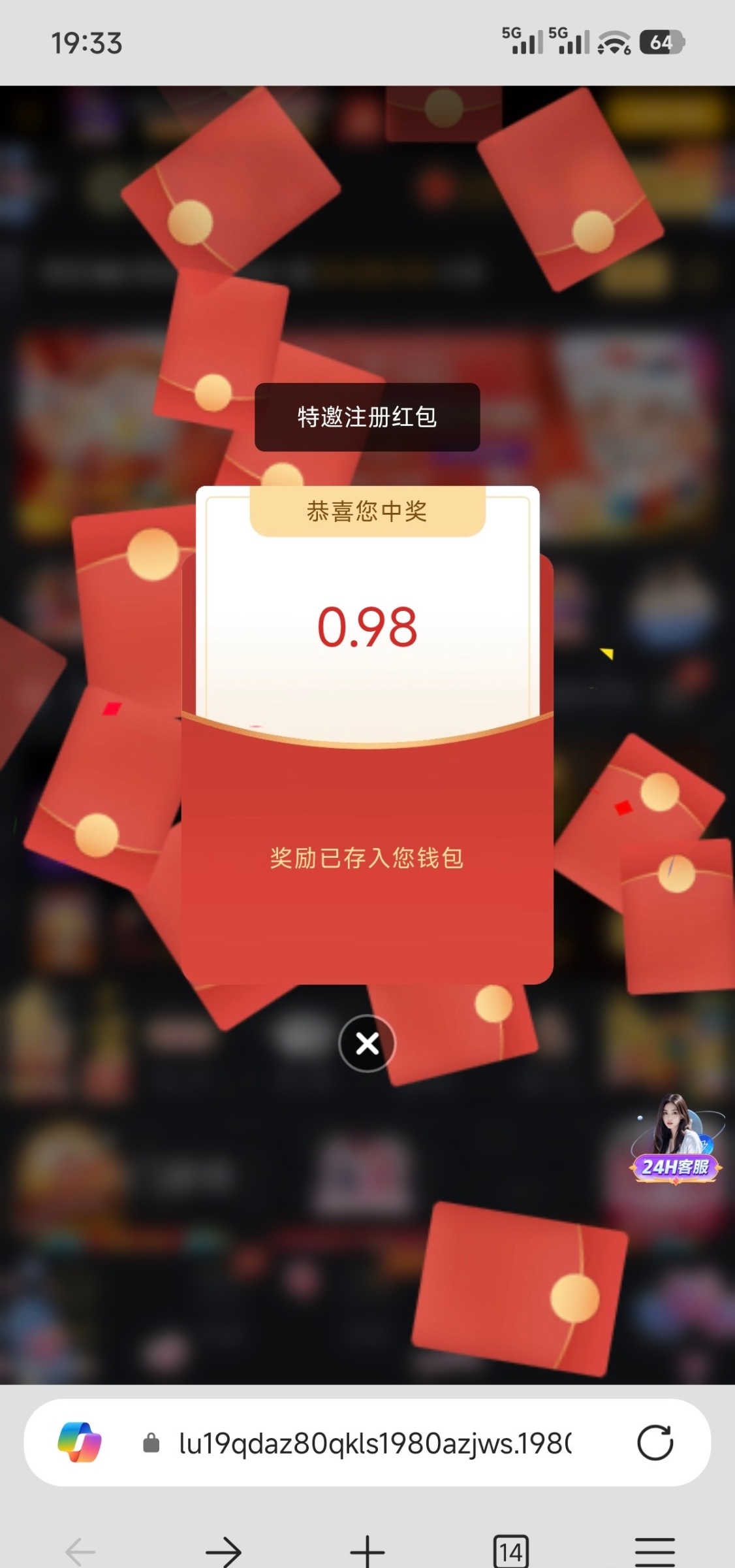 网址1980.vip,注册直接领 我运气不好才领到0.98