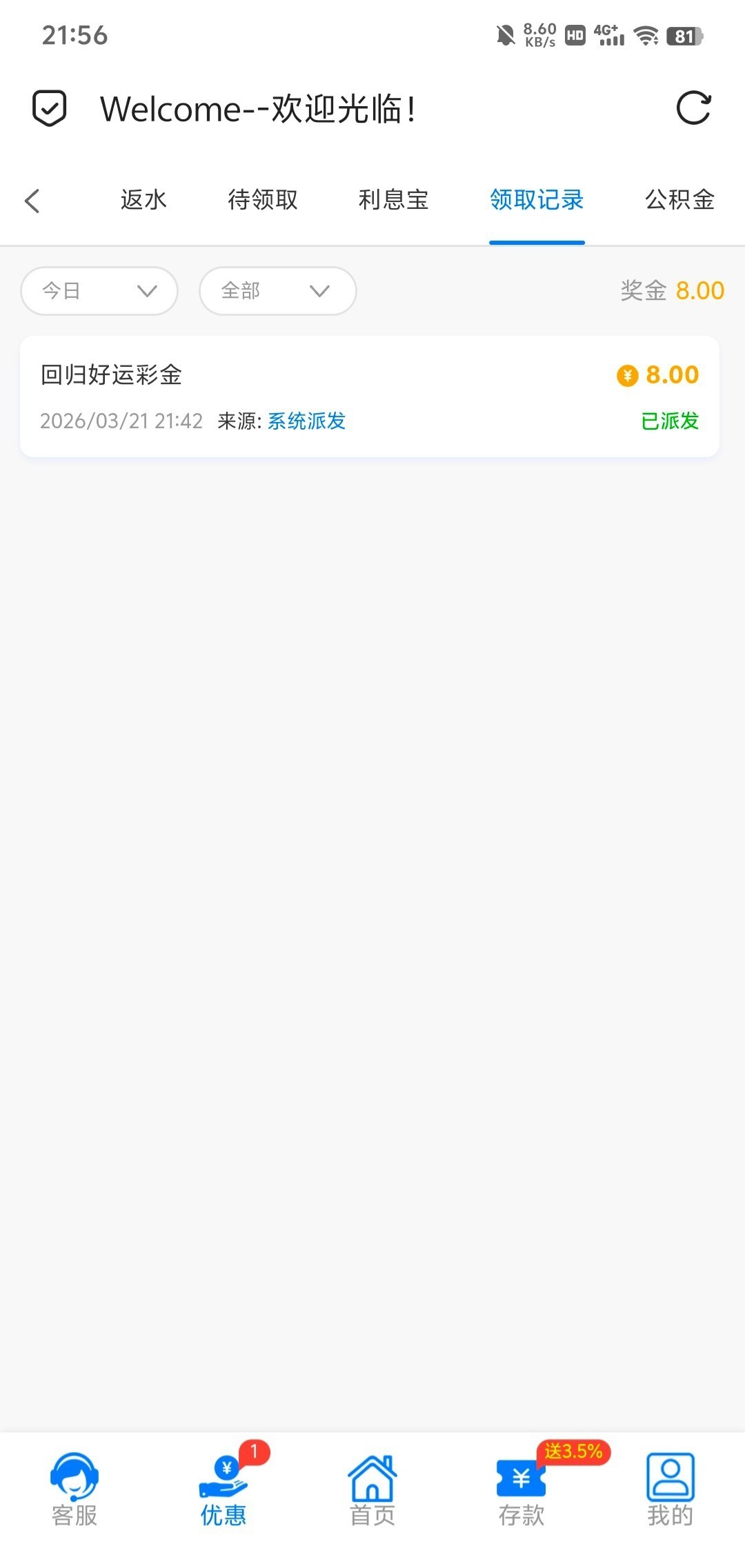 最近一个彩金都领不到