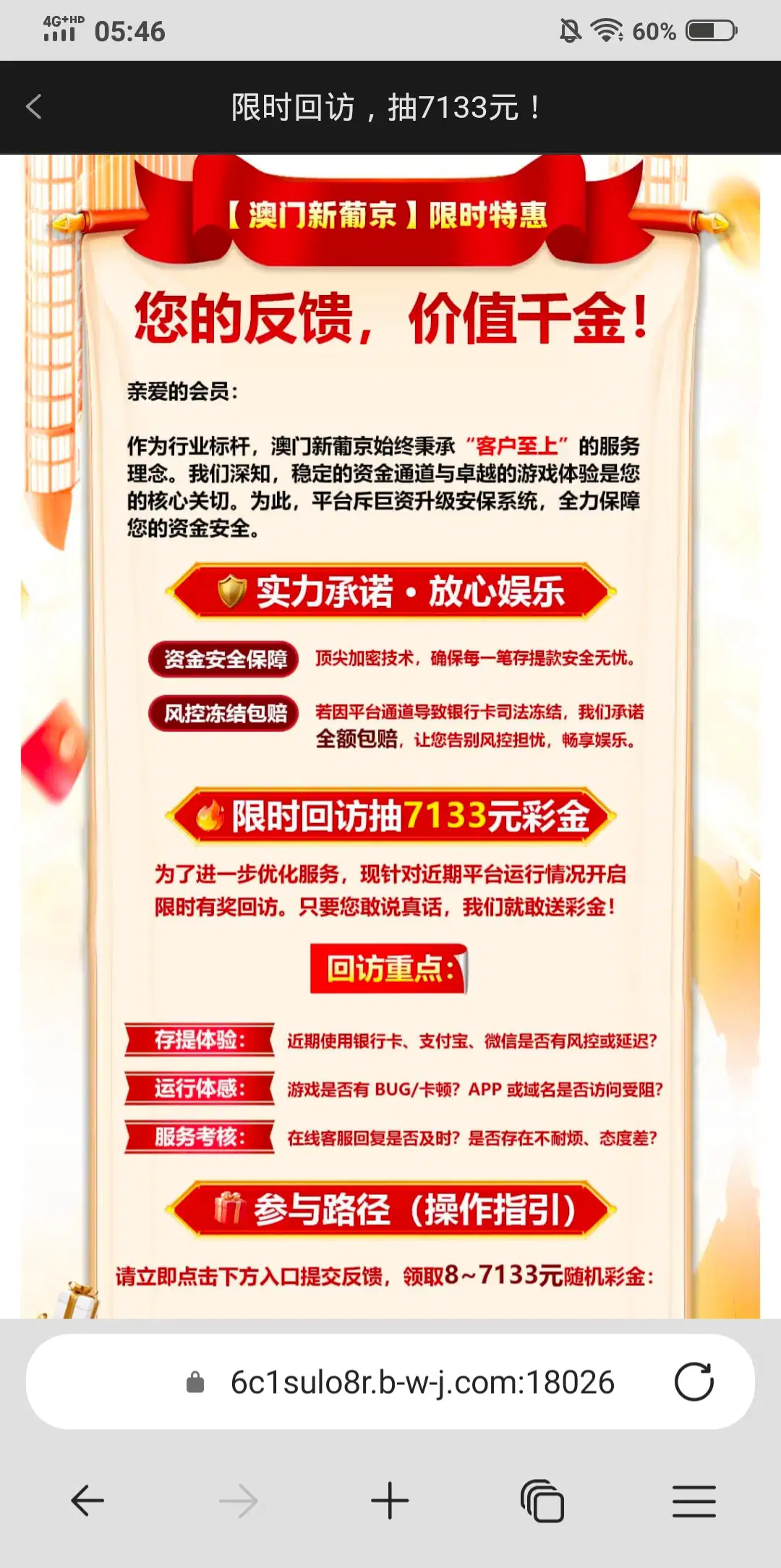 【葡京7133】 限时回访彩金