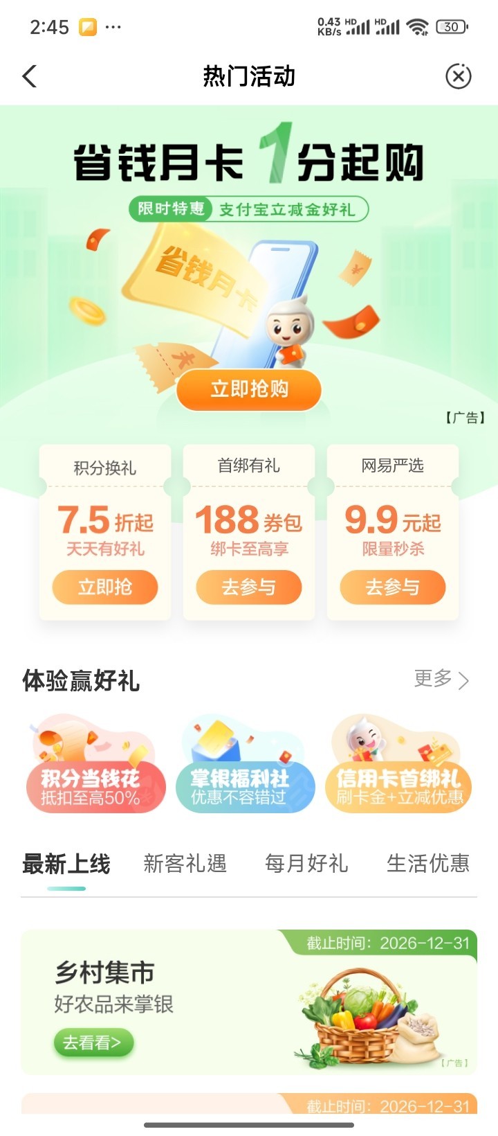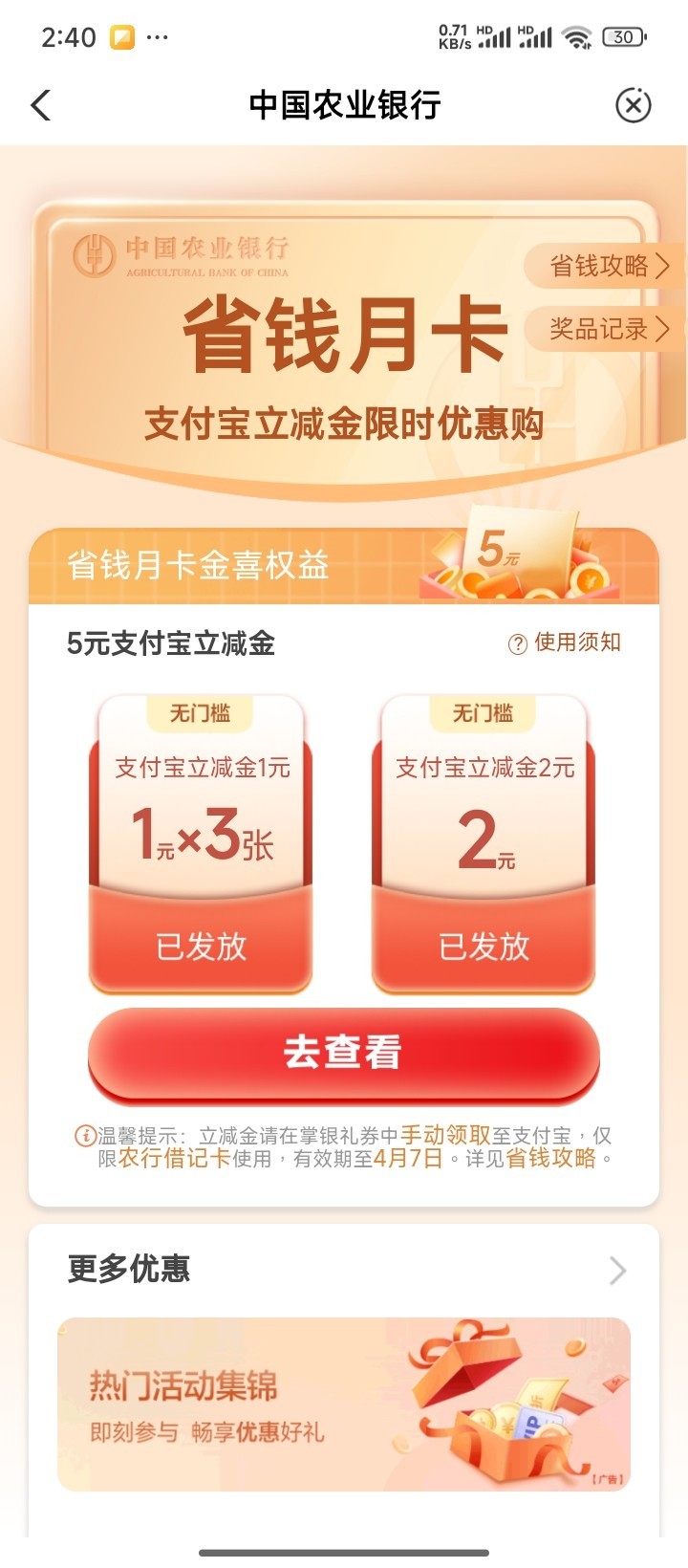 农业银行一分购