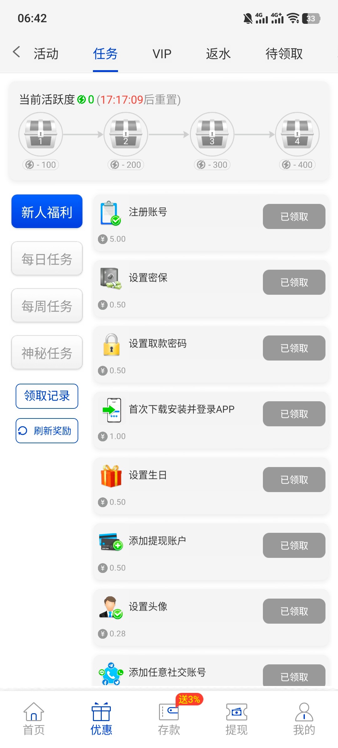 完成信息送8 要充值10才能娱乐 还可以绑定usdt地址申请体金