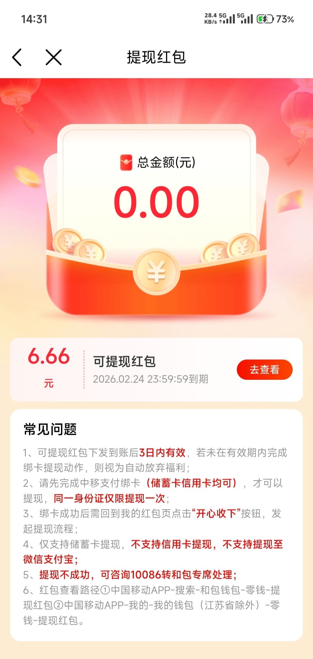 中国移动短信6.66红包