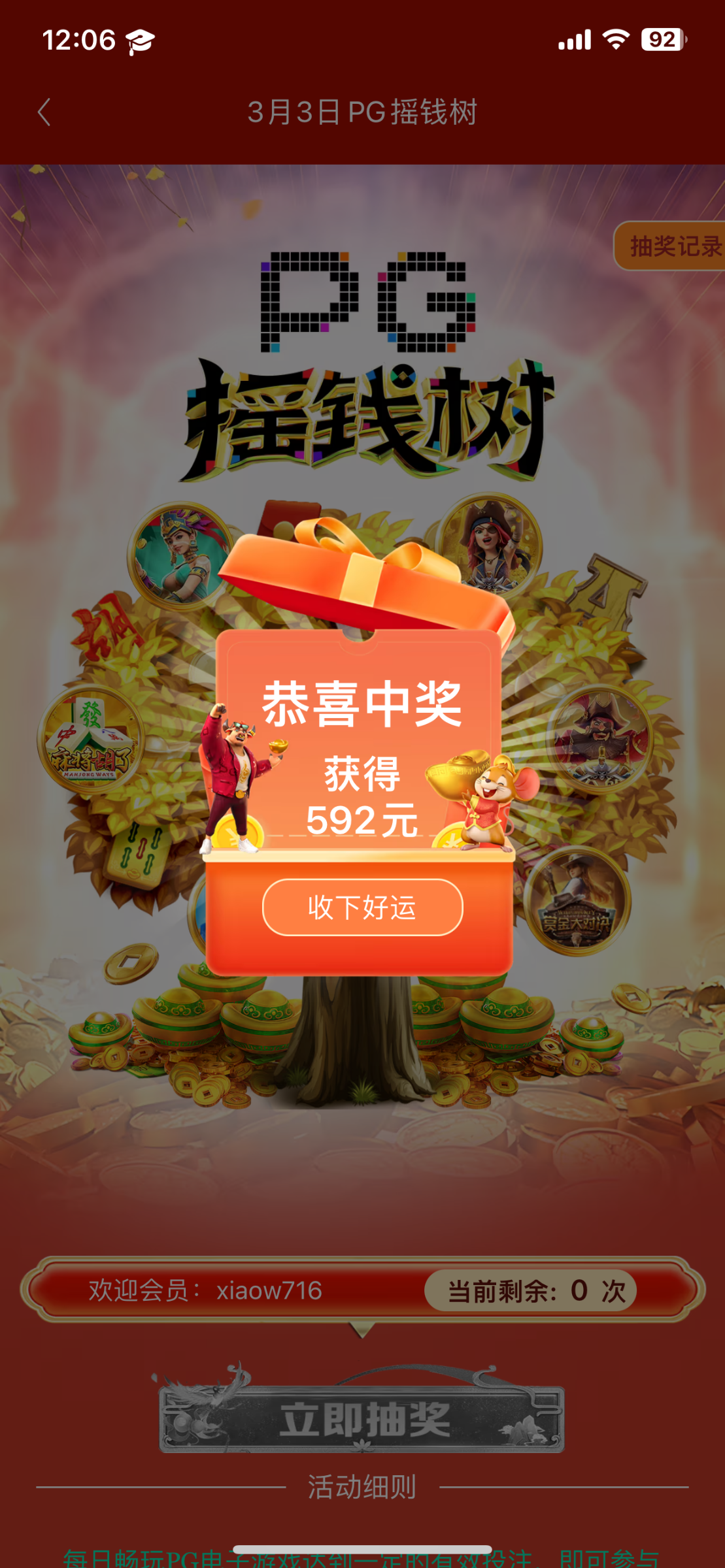 是的。前面摇了好多次都是几块钱 今天终于轮到我了