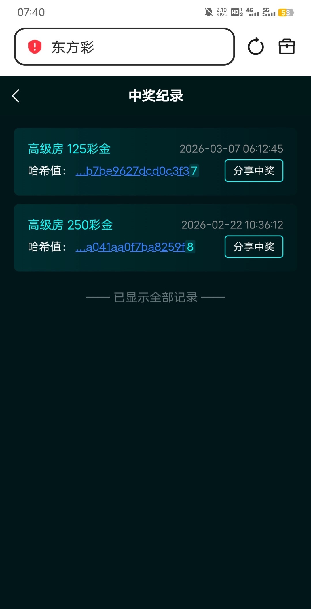 东方跟云顶抽中125 东方提了220,云顶打死了,76跟四亿是明天1点可以领,我是18-19的老号,过年那时候几个都抽了250