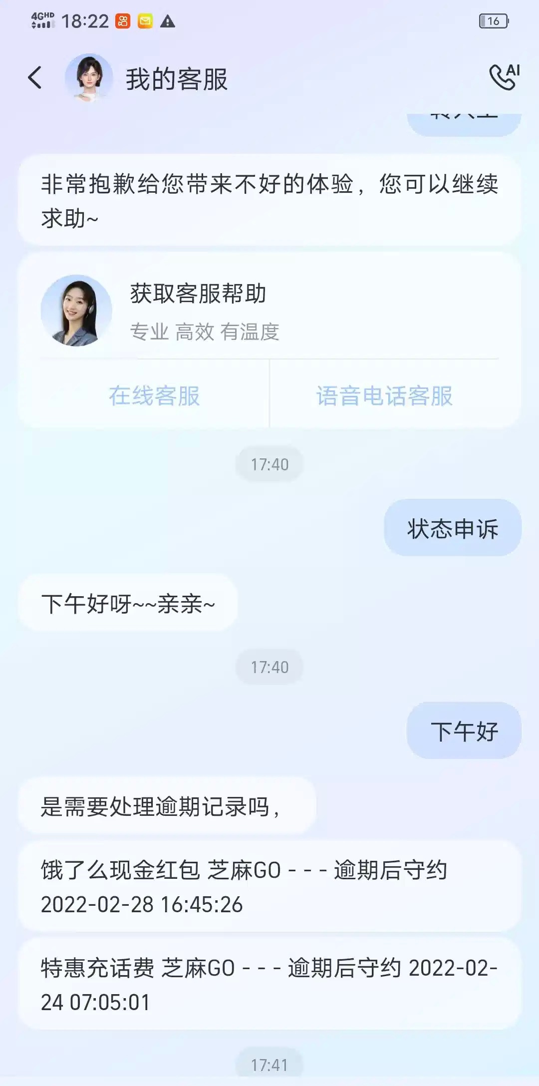 找到你那个逾期记录,下面有的我的客服入口,点进去,直接转人工,输入信用状态申诉,客服会问你原因,理由合理就行,客服不管的